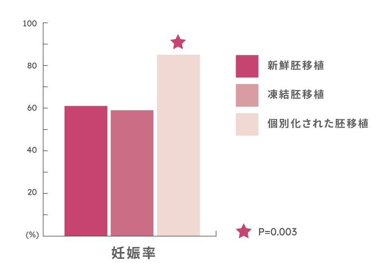 再検査によって最適な移植時期を特定した「個別化された胚移植」を実施した結果、妊娠率が24%向上したと報告されています。