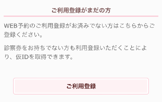 パソコン・携帯電話・スマートフォンから 、「WEB予約」にアクセスし、[ご利用登録]を選択してください。