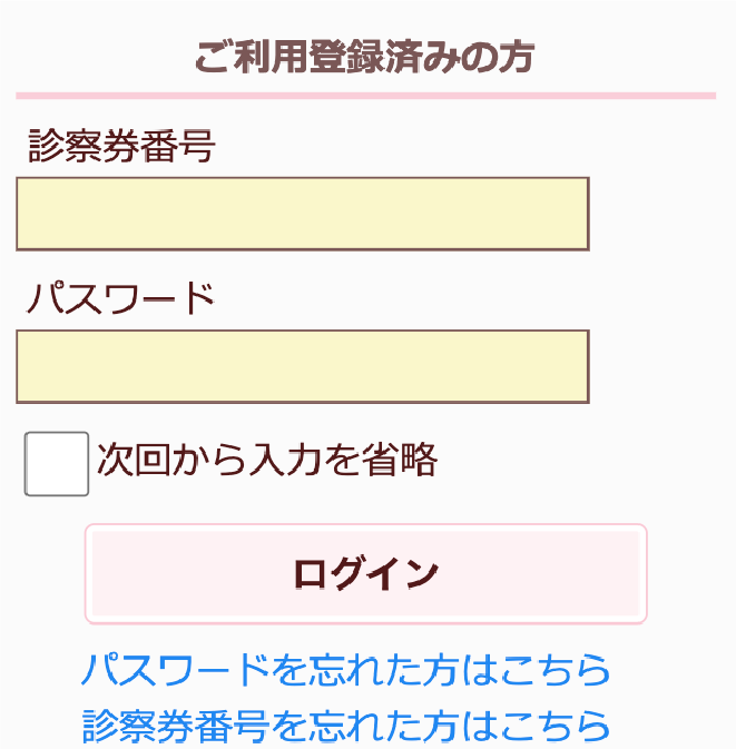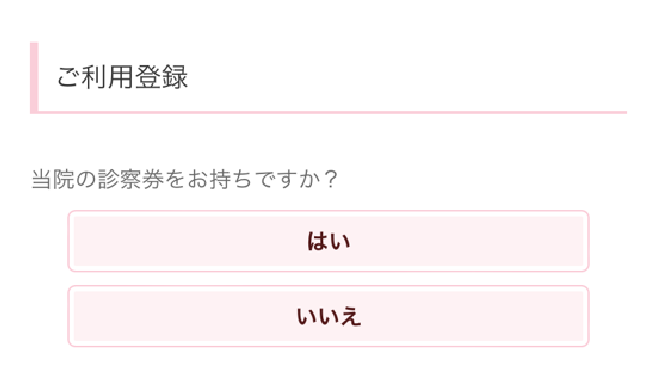 当院の診察券をお持ちの方は[はい]を選択してください。