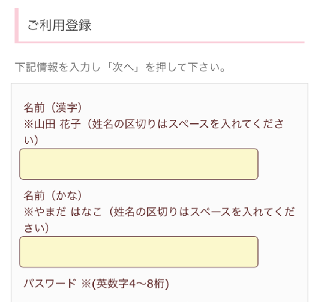 生年月日等の必要項目を入力し、[次へ]へ進みます。